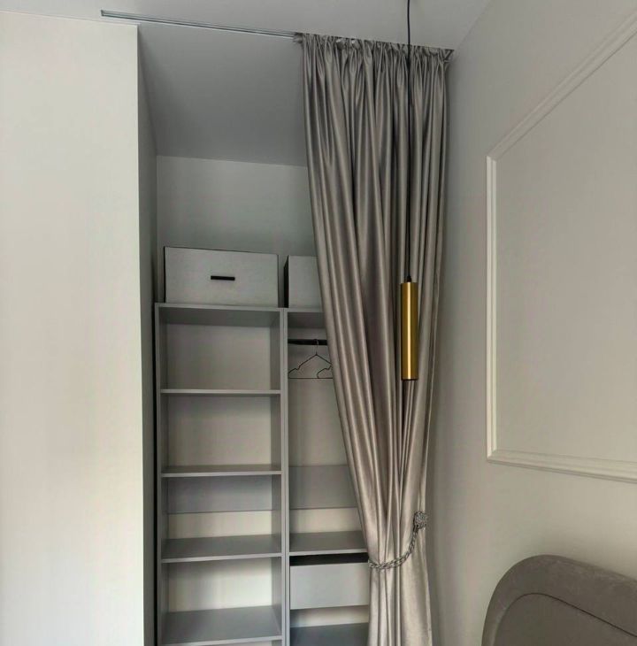 Просторная кухня-гостиная, изолированная спальня, совмещенный санузел, много мест для хранения.