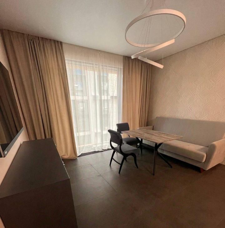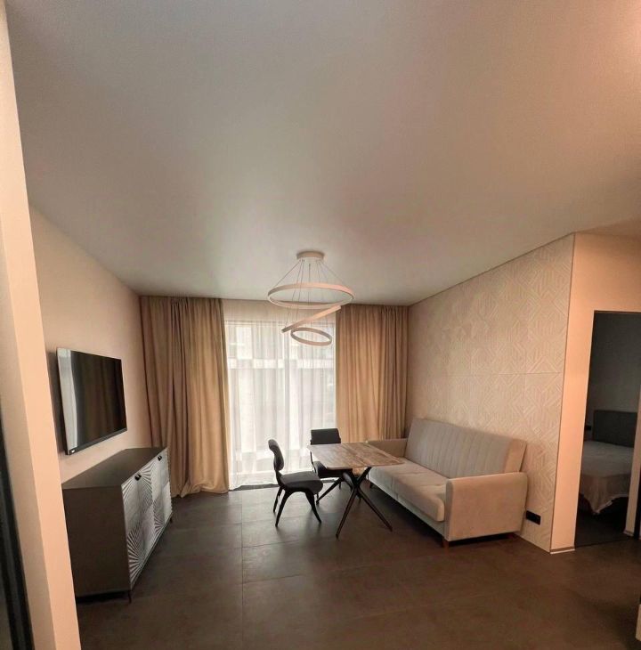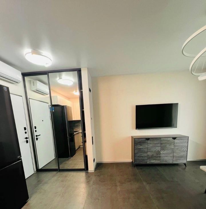 Общая площадь — 38 кв. м, уютная гостиная совмещенная с кухней и спальня.