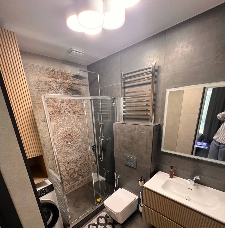 В квартире ДИЗАЙНЕРСКИЙ дорогой ремонт, вся необходимая мебель и техника: кондиционеры, холодильник, посудомоечная машина, два телевизора ( в гостиной и спальне), стиральная машина. Кухня полностью оборудована, в комнате также имеются все необходимые предметы мебели. В ванной комнате установлена душевая кабина, санузел совмещённый. Подключён wi-fi, и онлайн телевидение. В квартире все продумано для удобства проживания. В квартире есть новая посуда, гладильная доска, сушильная доска, чайник и прочие мелочи.