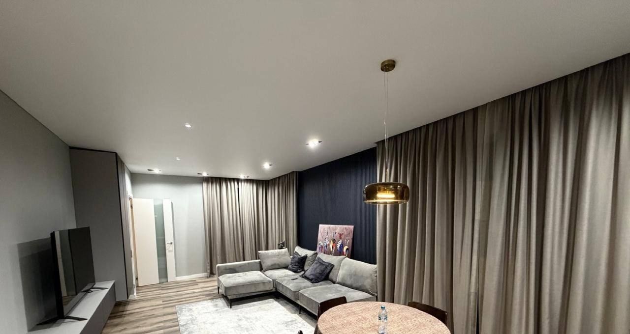 Квартира площадью 53 м² с продуманной планировкой включает изолированные комнаты, что идеально подходит для семьи с ребенком, пары или двух коллег. Дизайнерский ремонт, высокие трехметровые потолки и качественная отделка создают ощущение простора и уюта. Вся необходимая техника и мебель уже на месте: от стильной кухни с встроенной техникой и посудомоечной машиной до удобной кровати, телевизора, кондиционера и стиральной машины. Коммунальные платежи включены в стоимость аренды, что делает бюджет предсказуемым.