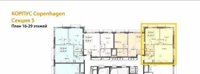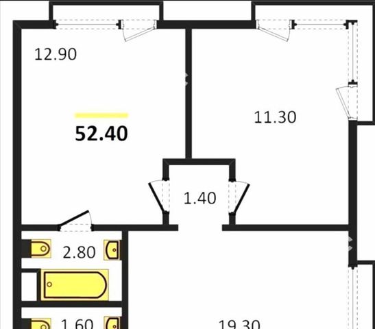 В квартире имеется просторная кухонная гостиная 19,3м2, комнаты 12,9м2, 11,3м2., прихожая 4м2, два сан. узла. Имеются квартиры на других этажах.