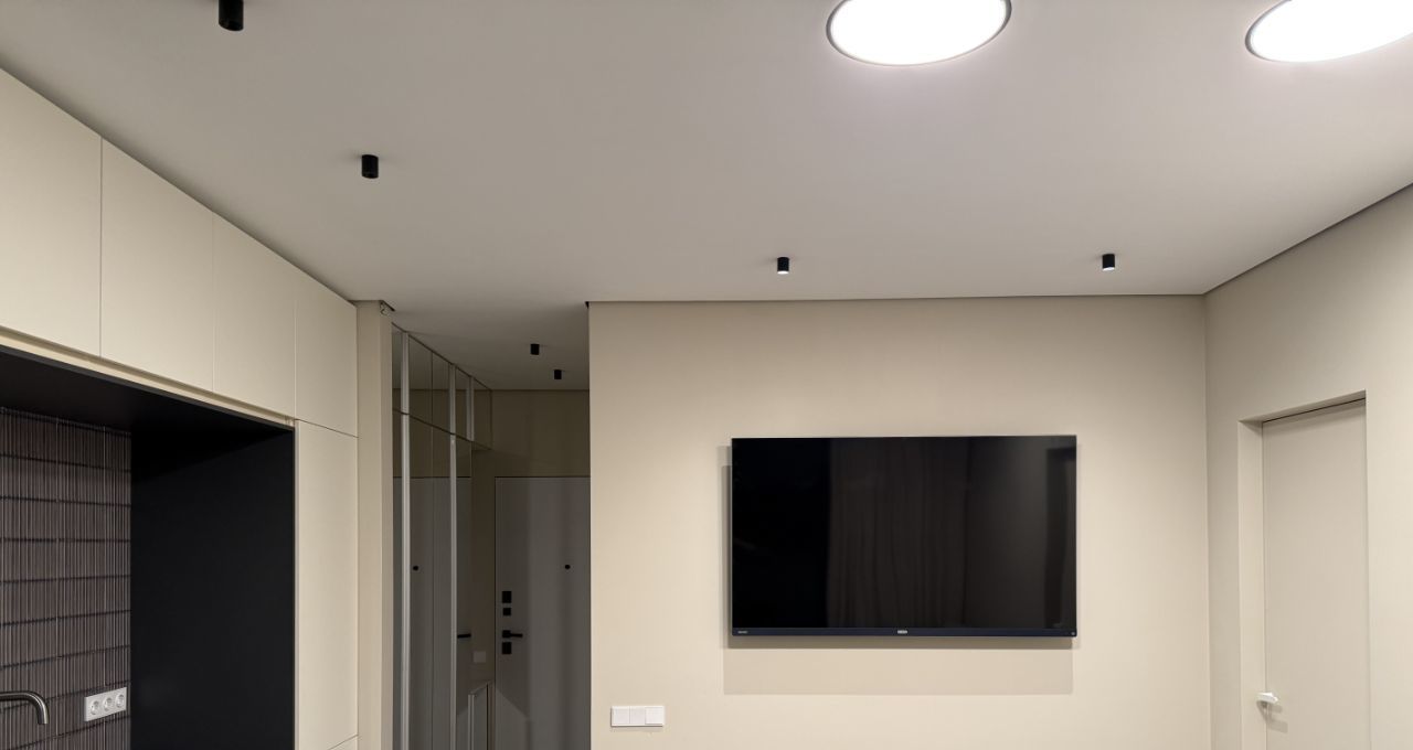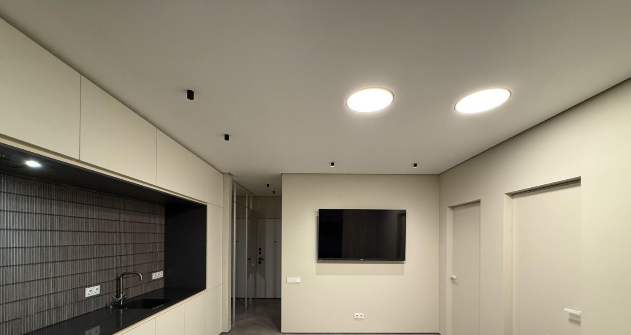 Посудомоечная машина; стиральная машина; холодильник; индукционная плита; духовой шкаф с функцией СВЧ; телевизор в спальне; телевизор в кухнегостиной.