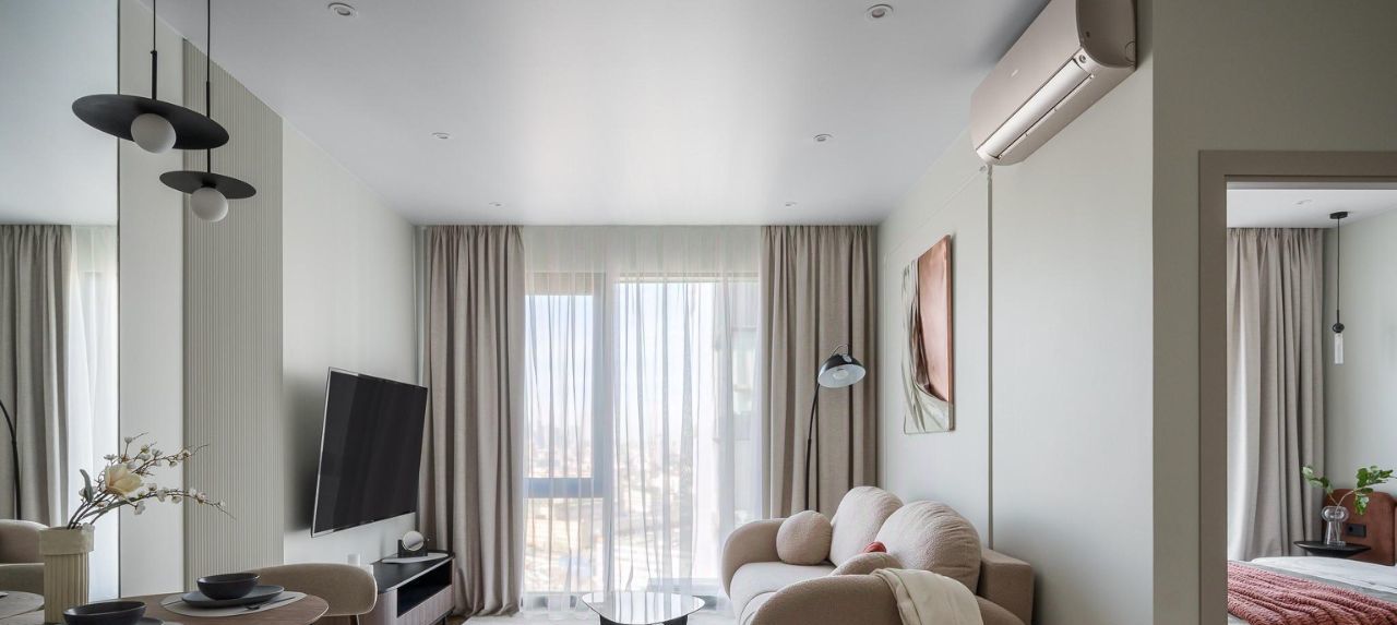 С высоты 29 этажа открывается потрясающий вид на закат и Москва Сити.