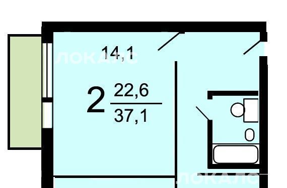 2-к кв. Москва Волгоградский просп., 93 (37.2 м²)