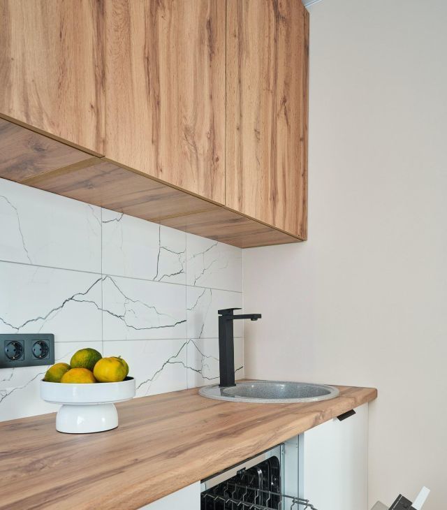 Функциональна кухня со всей современной техникой (посудомойка, варочная панель, духовой шкаф, холодильник, вытяжка и стиральная машина) совмещенный санузел, зона прихожей. Грамотно организованы зоны хранения вещей - установлен встроенный шкаф в прихожей и предусмотрено место для гардероба в спальне.