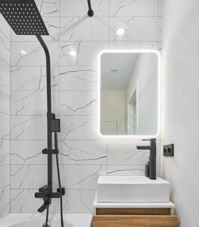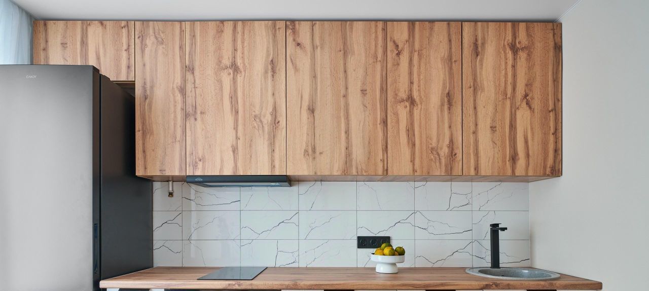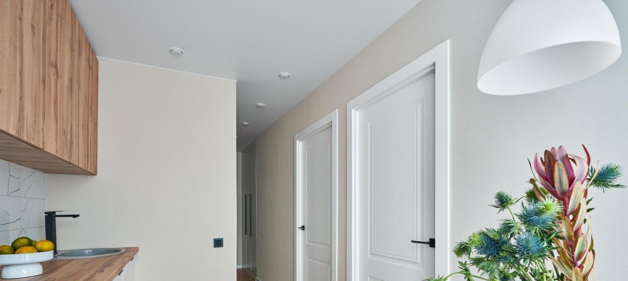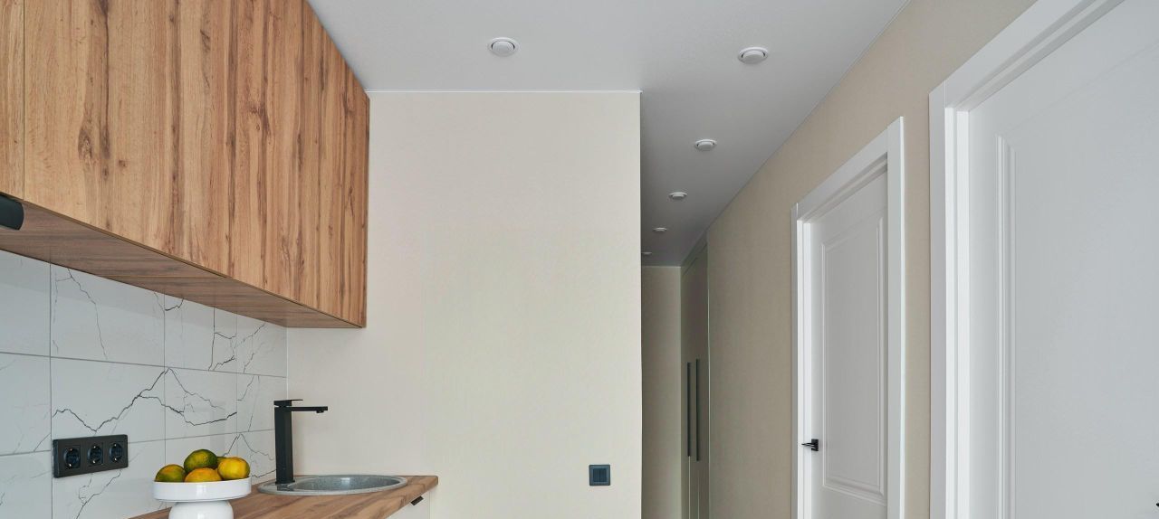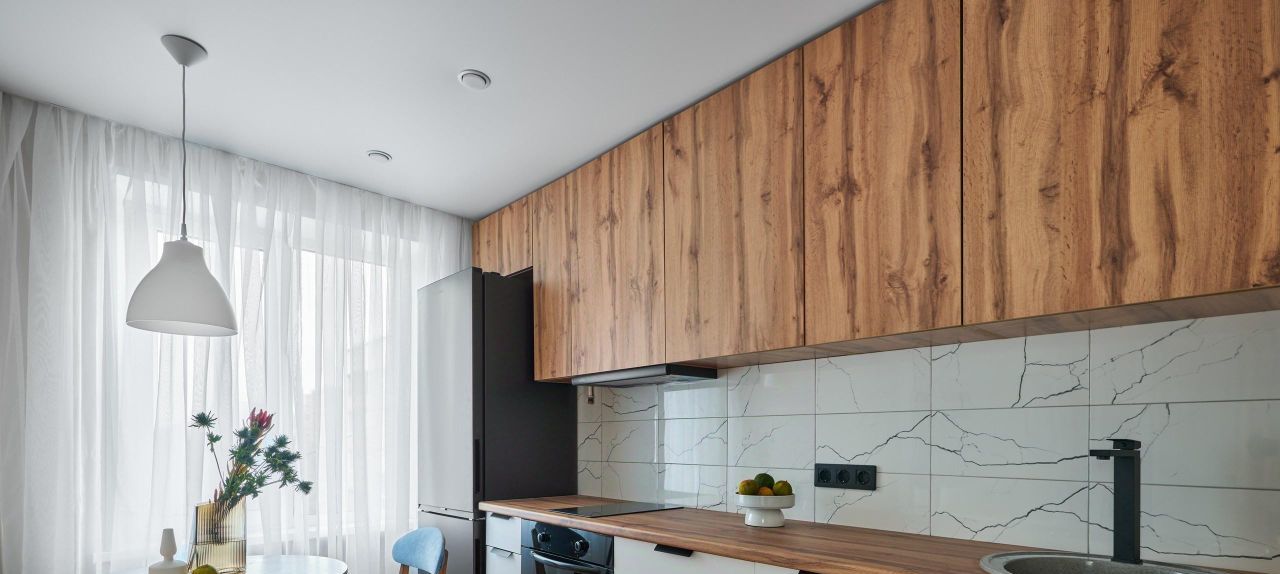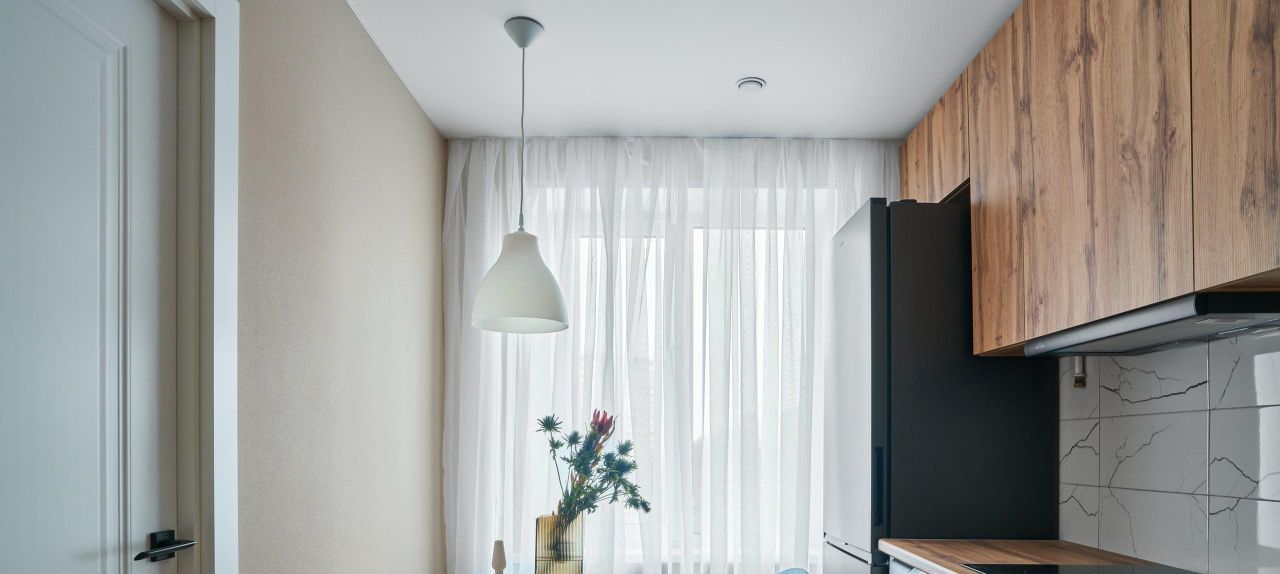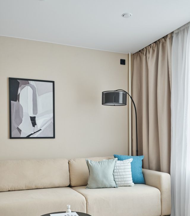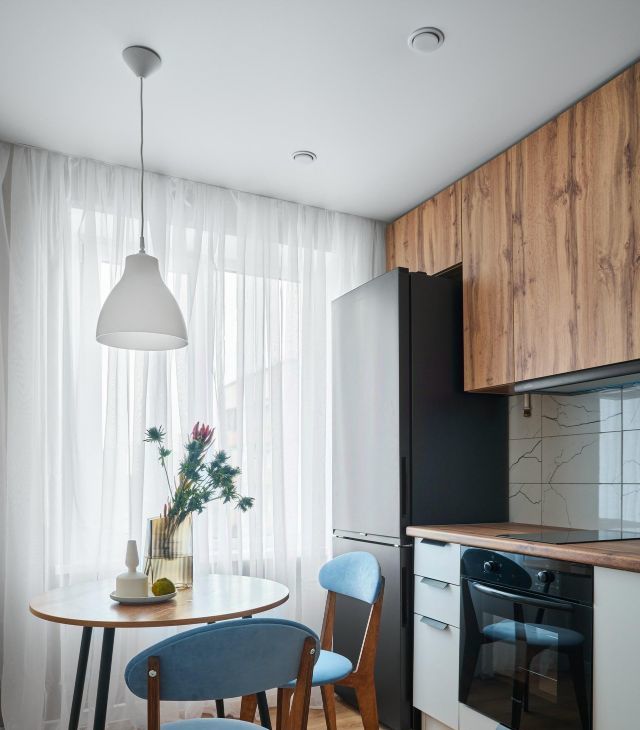 Современное дизайнерское решение выполнено в светлых с тонах, с приятными оттенками голубого, серого, дерева, а также стильными чёрными акцентами. Комфортный 8 этаж!