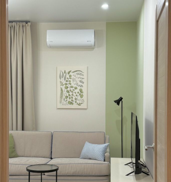 В квартире есть всё необходимое для комфортного проживания. Просторная жилая площадь 35 кв. м, кухня 10 кв. м, отдельный санузел с ванной. Балкон просторный 4 м. Окна выходят на улицу, что обеспечивает хорошее естественное освещение. В квартире есть вся необходимая техника: кондиционер, холодильник, телевизор, стиральная машина. Обстановка включает мебель на кухне и в комнатах. Интернет подключен, поэтому вы всегда будете на связи.