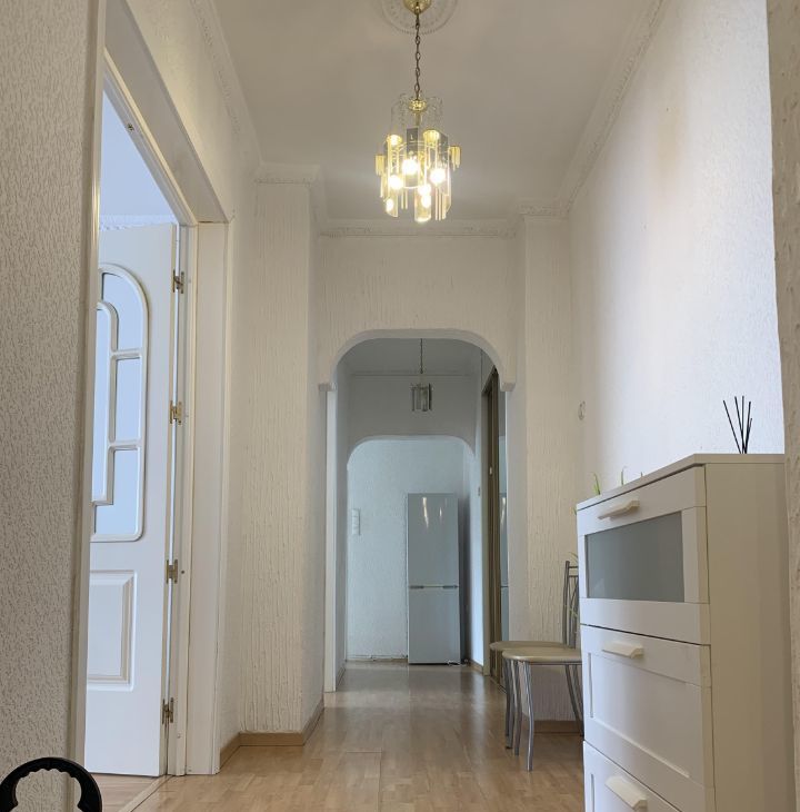 На длительный срок сдается просторная, светлая двухкомнатная квартира в сталинском доме 1955 года постройки. Квартира укомплектована всей необходимой для комфортного проживания мебелью и техникой. Комнаты изолированные. Кухня встроенная. Санузел раздельный.