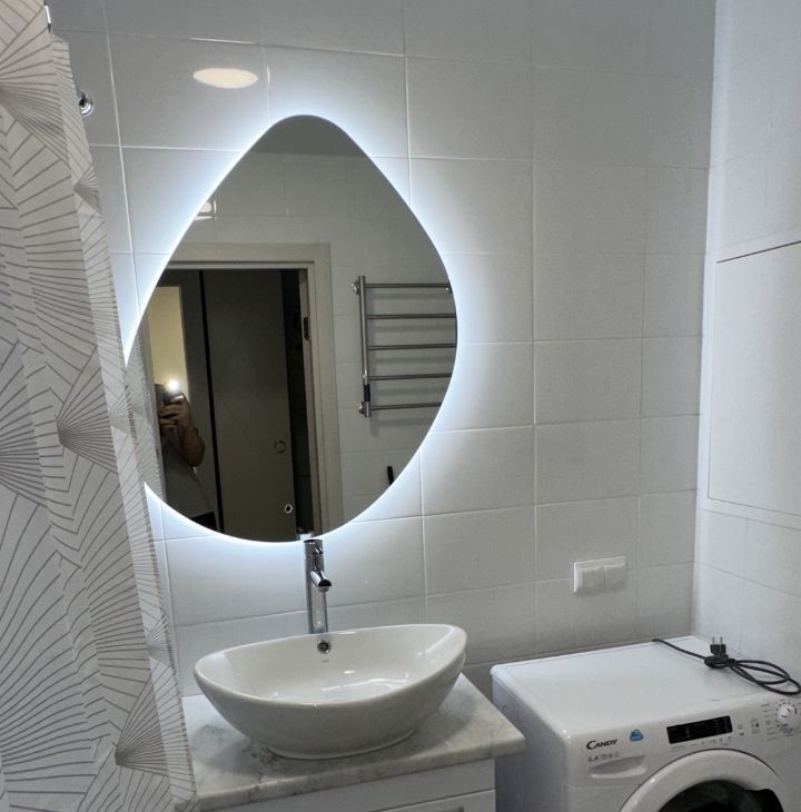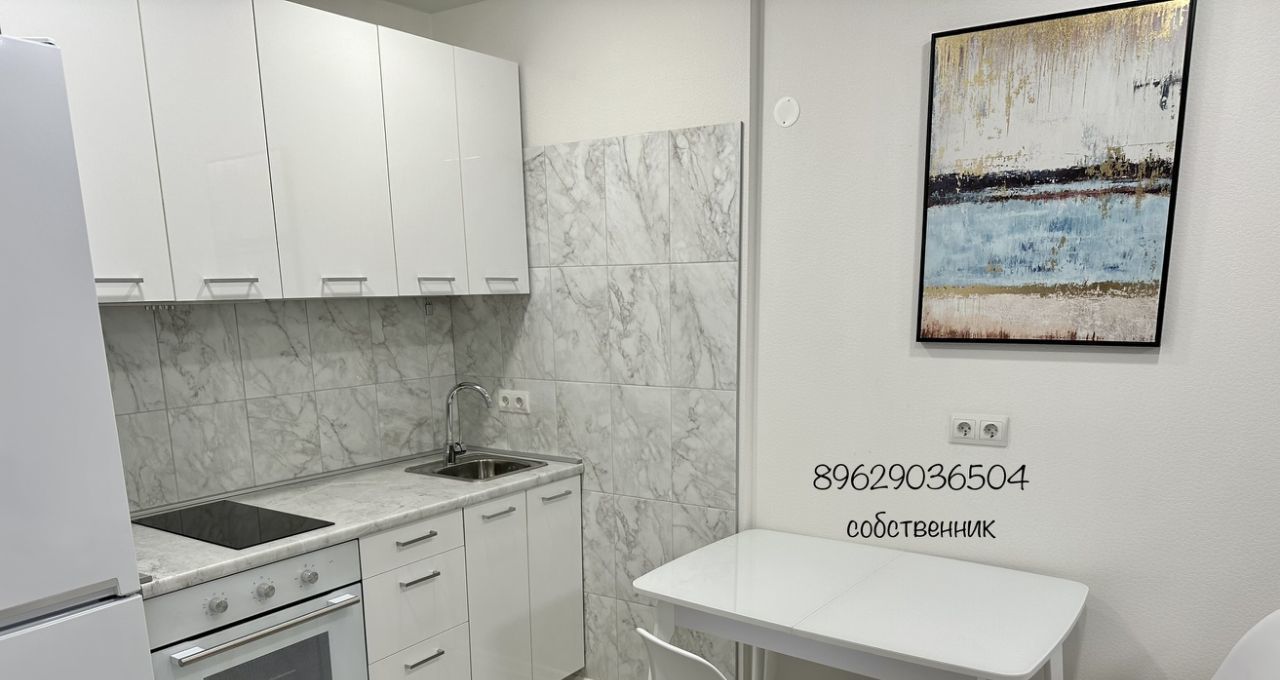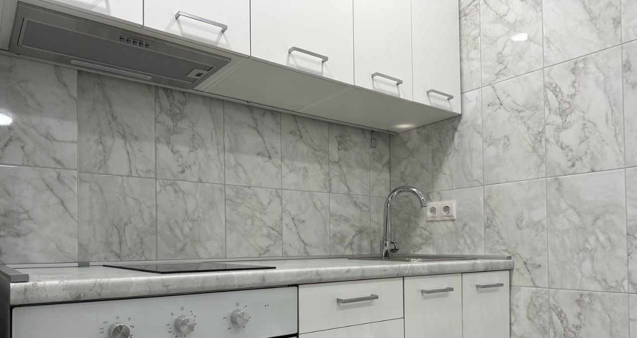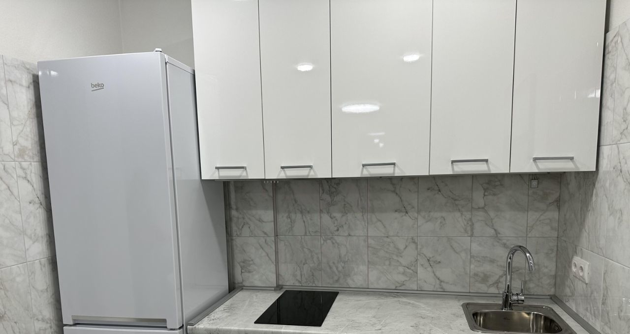 Бытовая техника: стиральная машина, холодильник, микроволновая печь, духовой шкаф, варочная индукционная панель, вытяжка, электрический чайник.