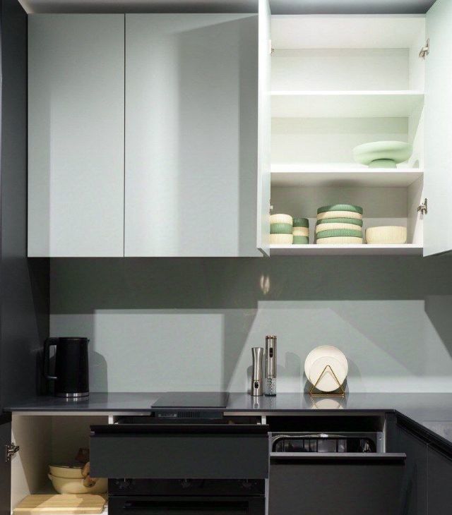 • Полностью оснащена техникой: Кухня оборудована всей необходимой бытовой техникой, включая холодильник, плиту и стиральную машину, что делает её удобной для повседневного использования.