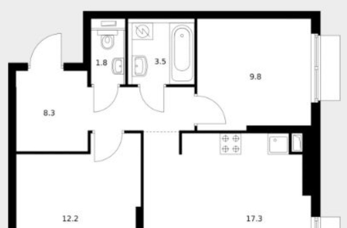 Сдаём 2-комн. квартиру (общ. 52кв/м) с большой кухней (17,3кв/м) и изолированными комнатами (12,2-9,8 кв/м).