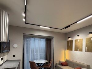 Отделка стен декоративной штукатуркой "Мокрый шелк", пробковое напольное покрытие (Португалия), во всей квартире подоконники из итальянского мрамора "Аrаbеsсаtо оrоbiсо", а также качественно сделанная электрика.