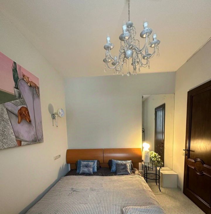 В квартире расположена двуспальная кровать (180*200 см) и удобный диван (спальные место 140*190).