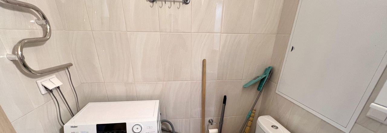 Санузел 2, просторный: ванна, раковина + шкафчик, унитаз, стиральная машина, полотенцесушитель.
