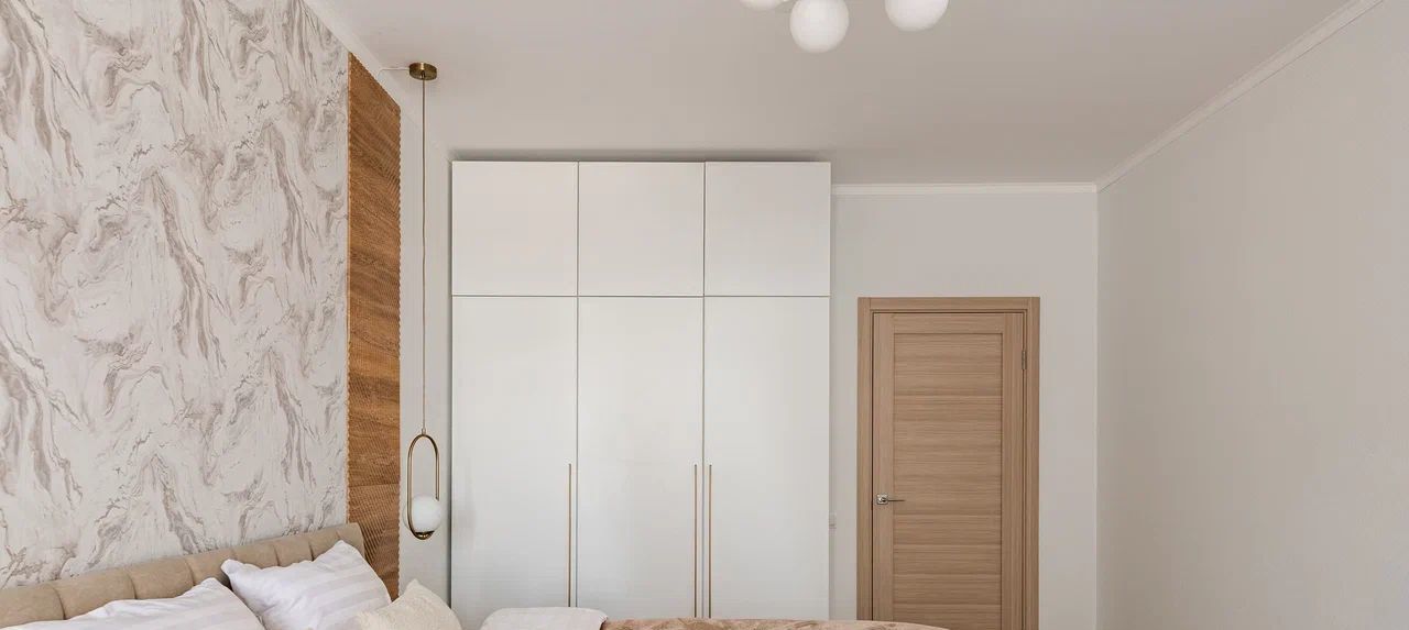 Просторная элегантная спальня вмещает кровать размера king-size с подъемным механизмом и удобным ортопедическим матрасом. Там же большой шкаф для вещей и туалетный столик.