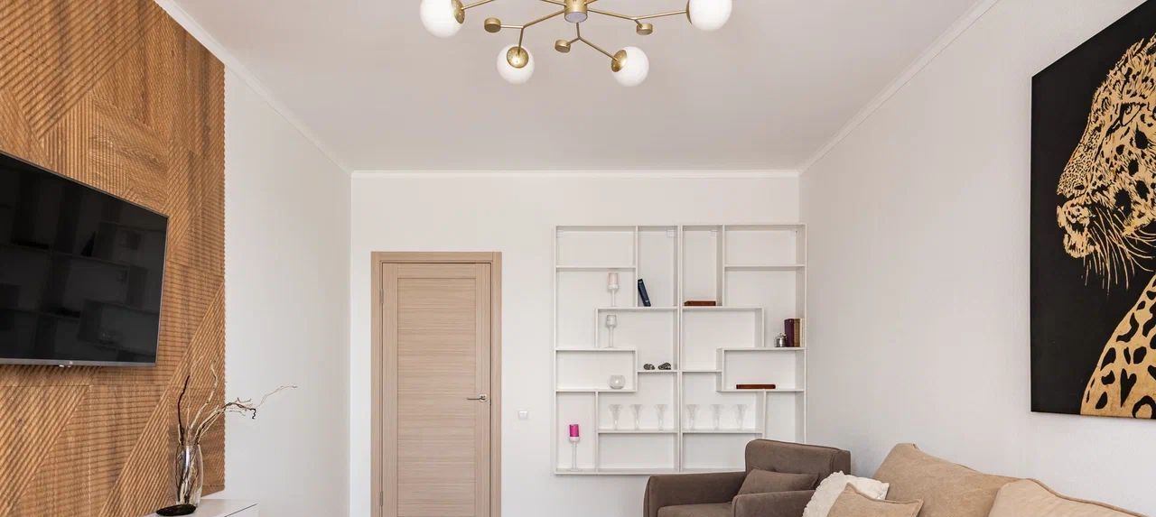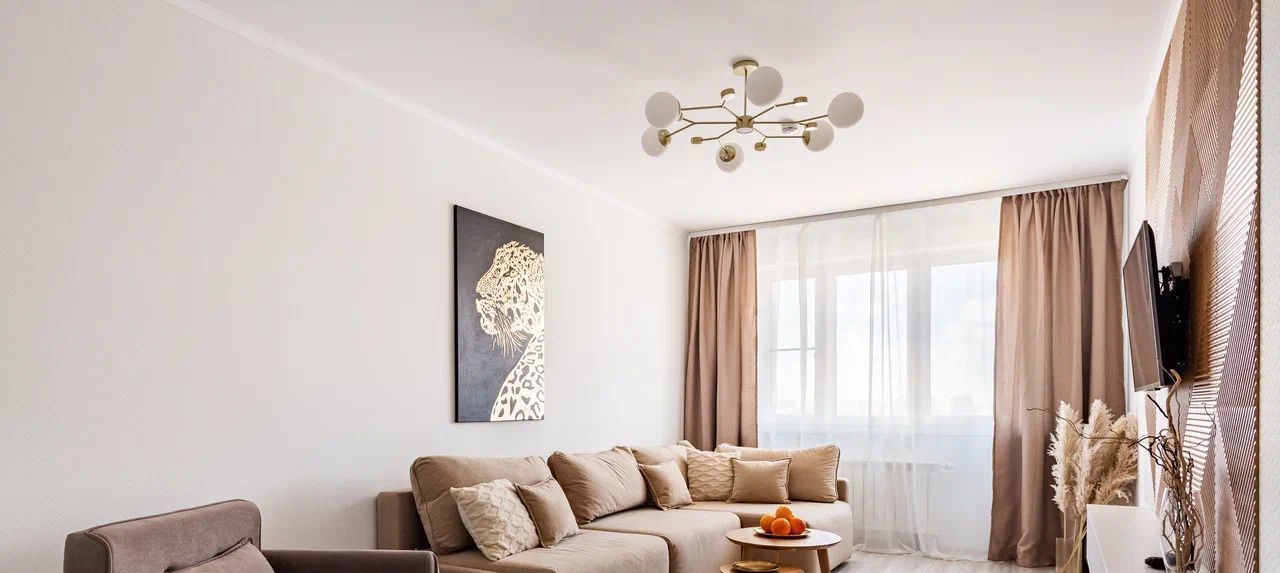 В гостиной комнате большой, удобный раскладывающийся диван и кресло. Телевизор Xiaomi с функцией Смарт-ТВ.