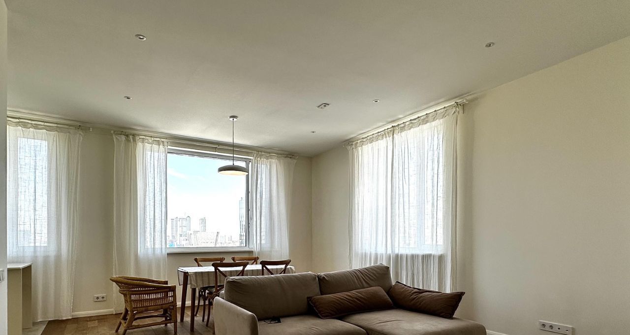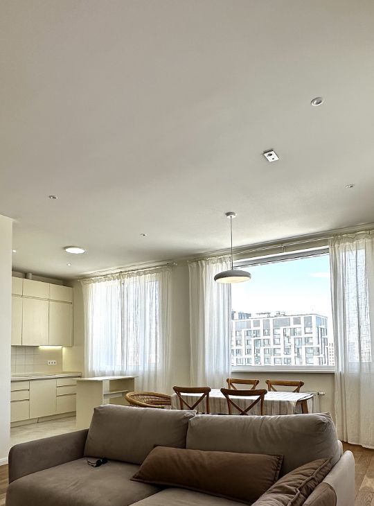 Предлагается к аренде просторная двухкомнатная квартира с качественным евроремонтом в современном монолитном доме, построенном в 2019 году. Окна выходят на улицу и во внутренний двор. Высота потолков составляет 3,1 метра.