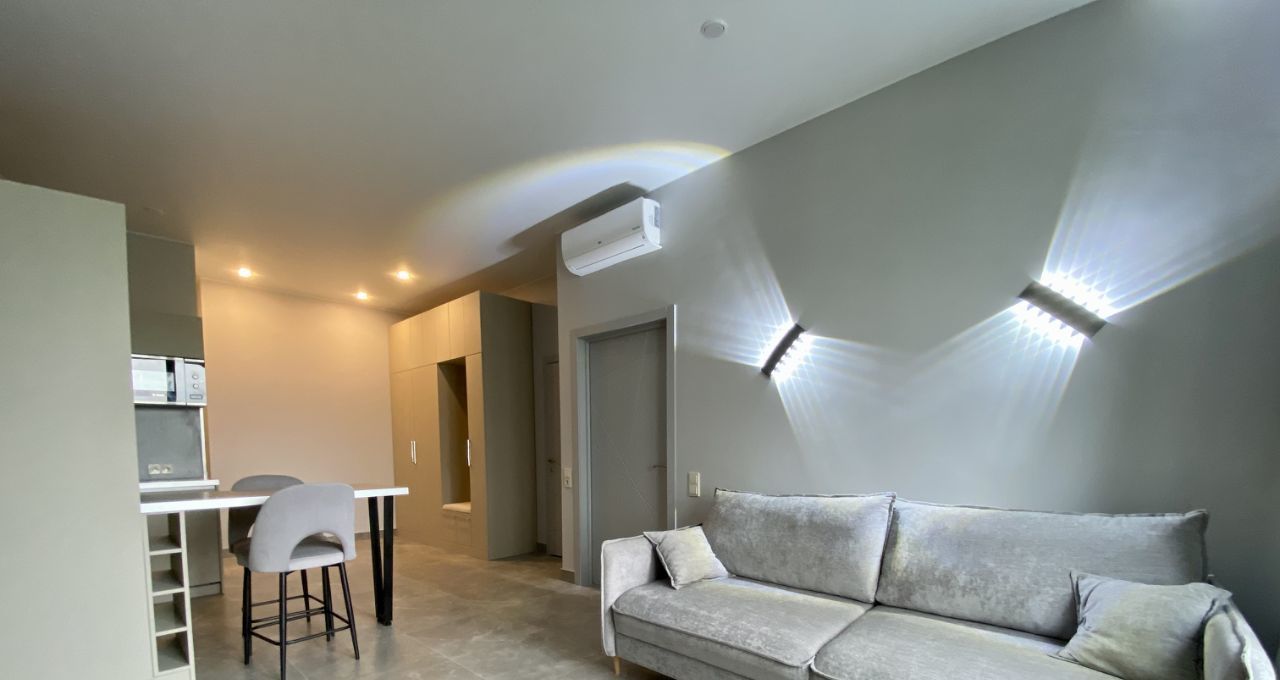 квартира укомплектована всей необходимой мебелью и техникой. Сделан качественный дизайнерский ремонт. Вся техника фирмы Bosch. Установлены кондиционеры.