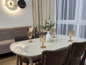 Квартира с дизайнерским ремонтом в новом доме. Полностью укомплектована мебелью и техникой. Высокие потолки 3,4 м делают квартиру ещё более просторной.