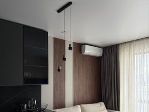 В апартаментах установлена качественная и современная мебель и техника (встроенные холодильник, духовой шкаф, варочная панель, посудомоечная машина, микроволновая печь, стиральная и сушильная машины, 3 кондиционера).