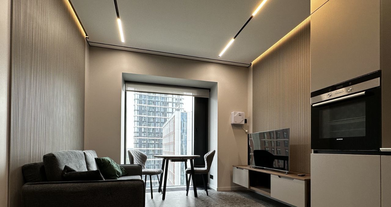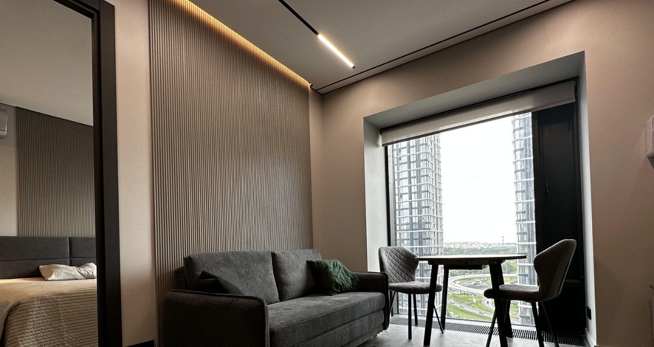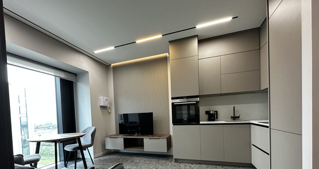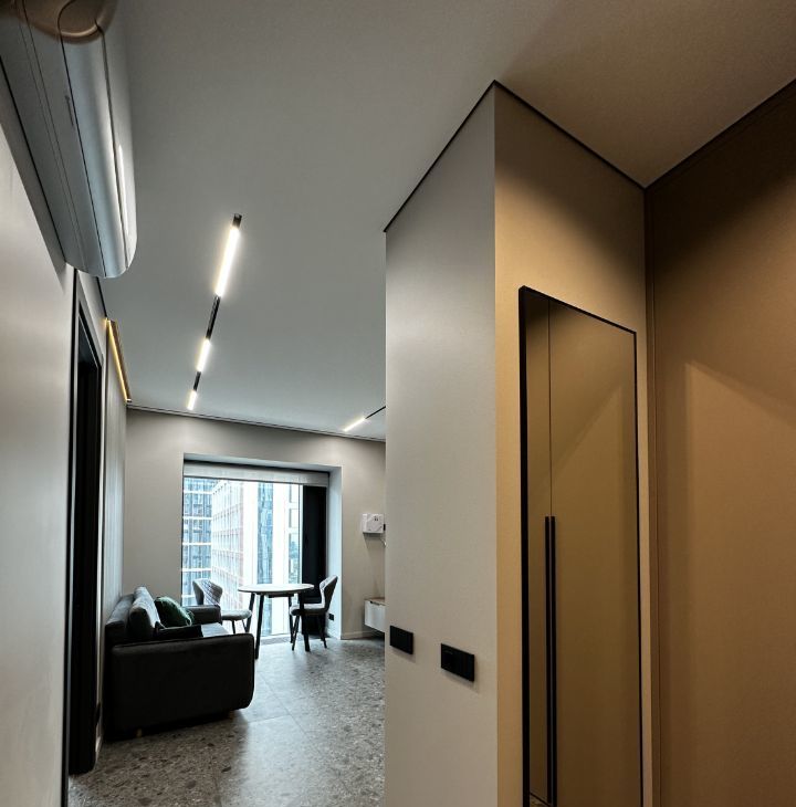Сдаётся в аренду ВИДОВАЯ стильная квартира (евродвушка с кухней-гостиной и спальней) с дизайнерским ремонтом. Общая площадь — 42 кв. м, расположена на 17 этаже 19-этажного дома, построенного в 2024 году. Квартира светлая и просторная, с окнами, выходящими на улицу.