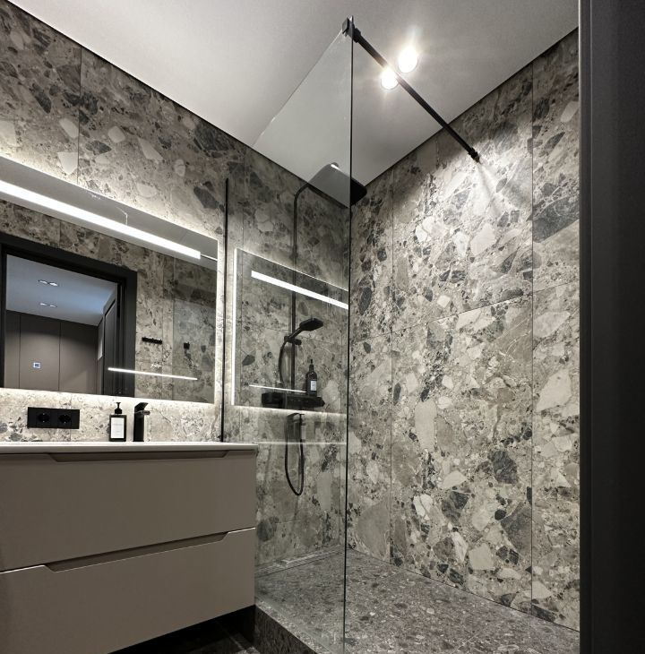 В квартире есть всё необходимое для комфортного проживания. Встроенная мебель на кухне и в комнате дополняет уютную атмосферу. Из техники предоставляется кондиционер (+бризеры), холодильник, посудомоечная машина, телевизор и стиральная машина. Совмещённый санузел с душевой кабиной обеспечивает удобство. Подключён интернет, поэтому вы всегда будете оставаться на связи.