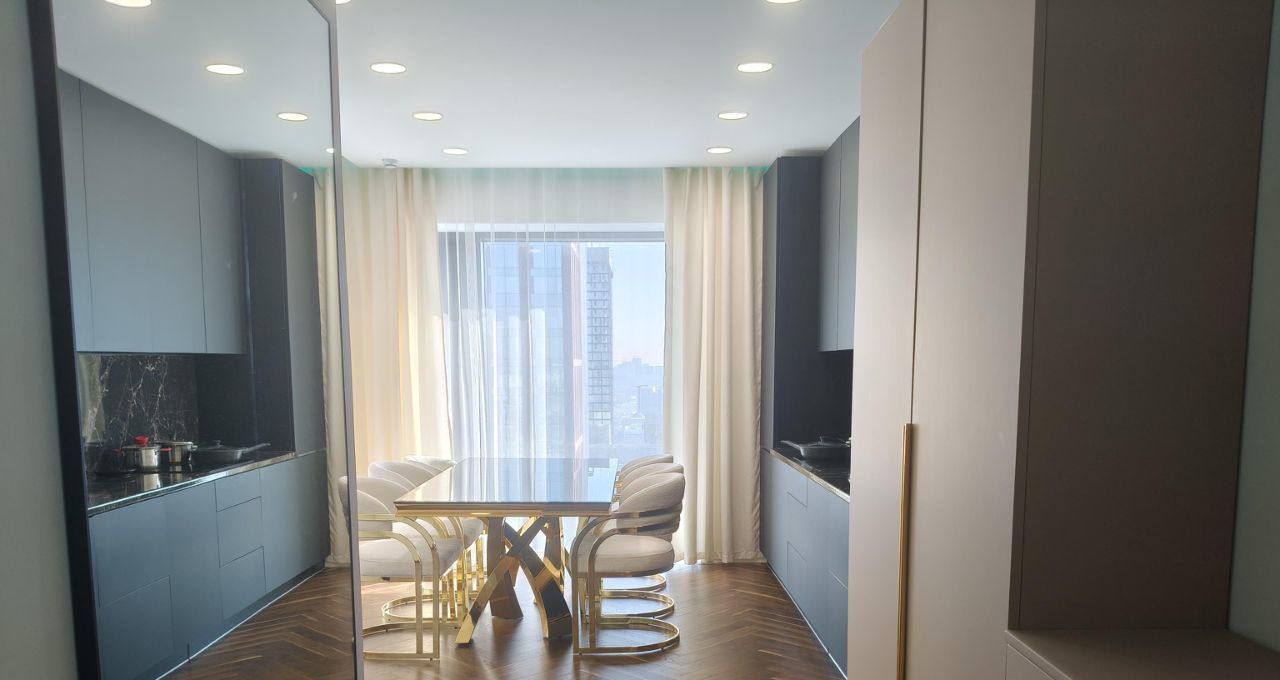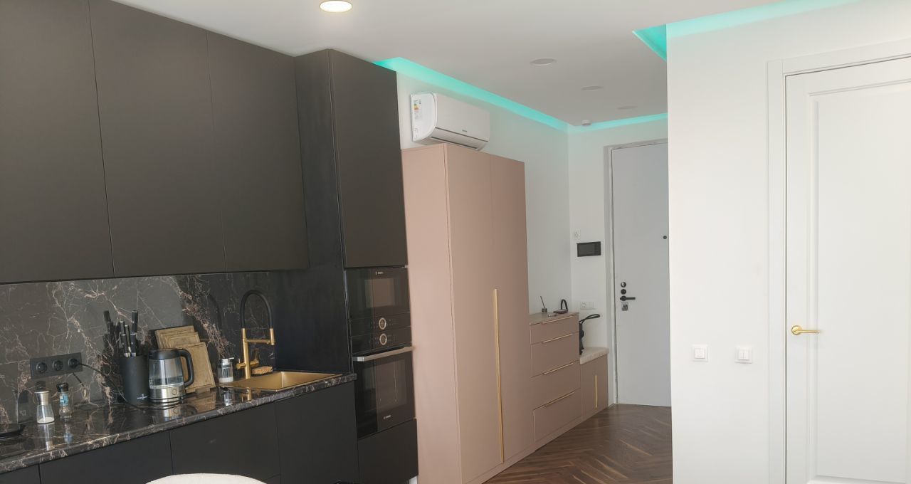 Квартира с высококачественными ремонтом, мебелью и техникой, выполненных и привезенных под заказ.