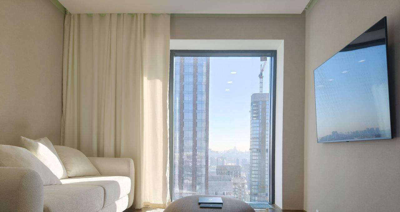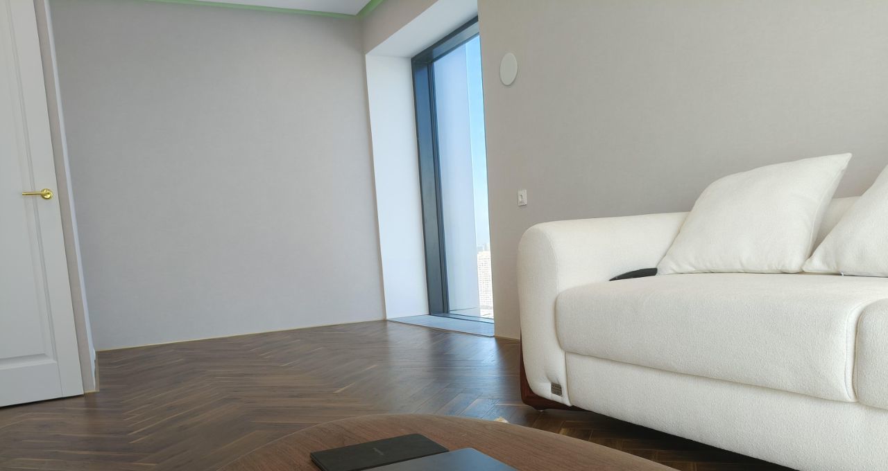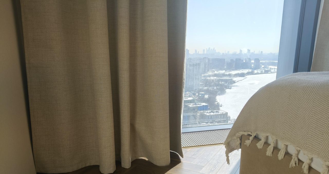 Квартира отлично освещенная с превосходными видами, большая кухня гостиная 16.8 квм с видом на Москва-реку и Запад, 2 изолированных комнаты (21 +11.3 квм), гардеробная и постирочная (стиральная и сушильная машины), совмещенный санузел. Кондиционер, WiFi, современные инженерные системы, встроенные конвекторы.
