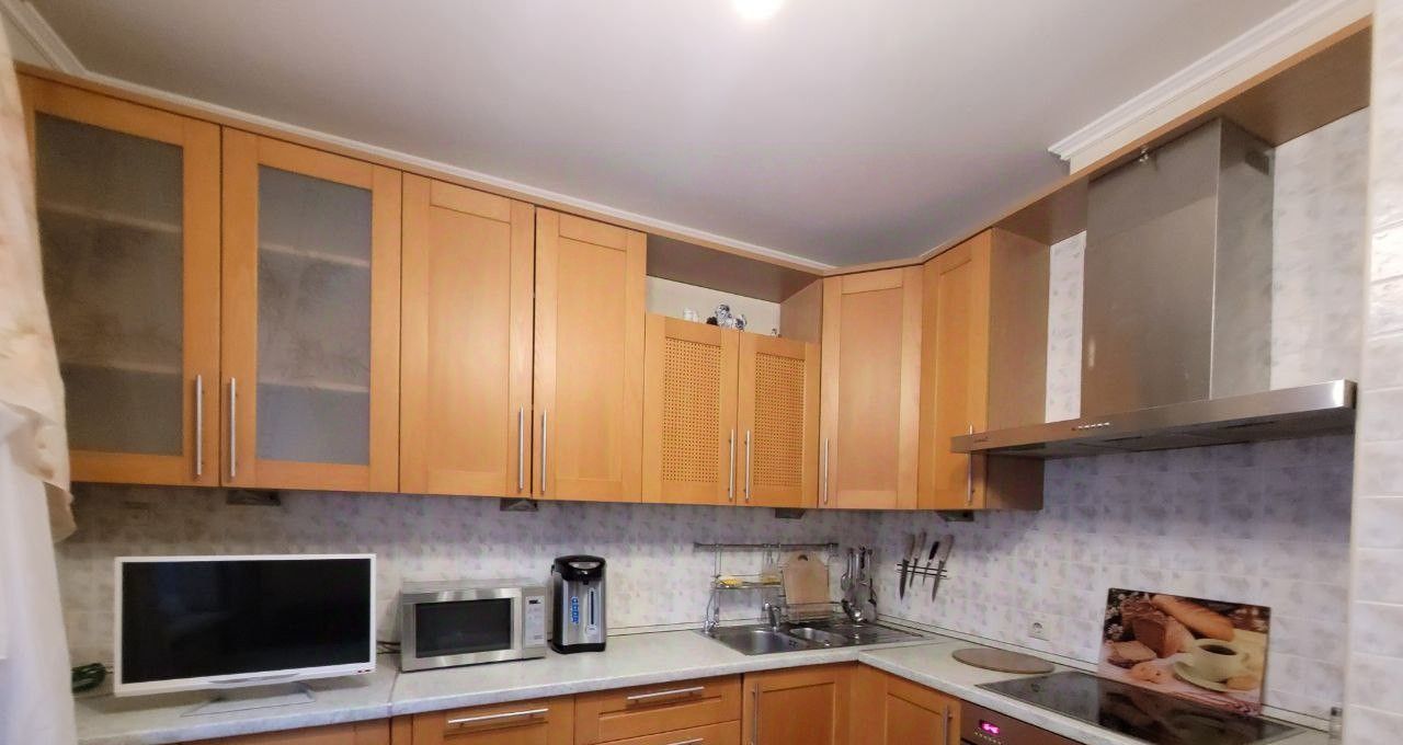Уютная двушка для семьи с двумя детьми. Квартира хорошо укомплектована мебелью и техникой. Две изолированные спальни. Спальня для родителей и детская для двух детей. В детской две отдельные кровати 90х200 см. с ящиками для игрушек, шведская стенка для занятий спортом, письменный стол, два книжных шкафа, ТВ, чтобы смотреть детские каналы. На кухне есть диван, который можно использовать как дополнительное спальное место. Так же на кухне есть кондиционер, посудомоечная машина, варочная панель, вытяжка, термопот, СВЧ печь. В спальне родителей есть мебельный гарнитур, кондиционер и ТВ. На лоджии пол с подогревом, сушилка для белья, шкаф для вещей, гладильная доска с утюгом. В прихожей два шкафа для одежды, тумба с зеркалом, комод, вешалка с тумбой.