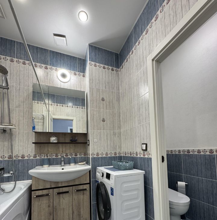 Квартира предлагает дизайнерский ремонт, современную мебель и полную комплектацию необходимой бытовой техникой, включая холодильник и стиральную машину. Удобная планировка включает отдельный санузел и еще есть подсобное помещение. На кухне и в комнате установлена вся необходимая мебель, что позволяет вам сразу же наслаждаться комфортом. Диван в гостиной раскладывается, спальня оборудована двуспальной кроватью с ортопедическим матрасом