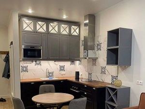 На кухне встроенный гарнитур, вместительный холодильник, микроволновая печь, чайник, телевизор, удобный диван, при необходимости раскладывается в дополнительное спальное место. Стиральная машинка с функцией сушки белья, душевая кабина с функцией сауны и гидромассажа, оснащена радио. Проведен интернет и телевидение 24часа ТВ, при необходимости можно подключить.