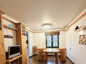 Квартира полностью меблирована: в комнатах и на кухне есть необходимая мебель. Из техники имеются холодильник, телевизор и стиральная машина. В ванной установлена ванна. В квартире проведены интернет и телефон.