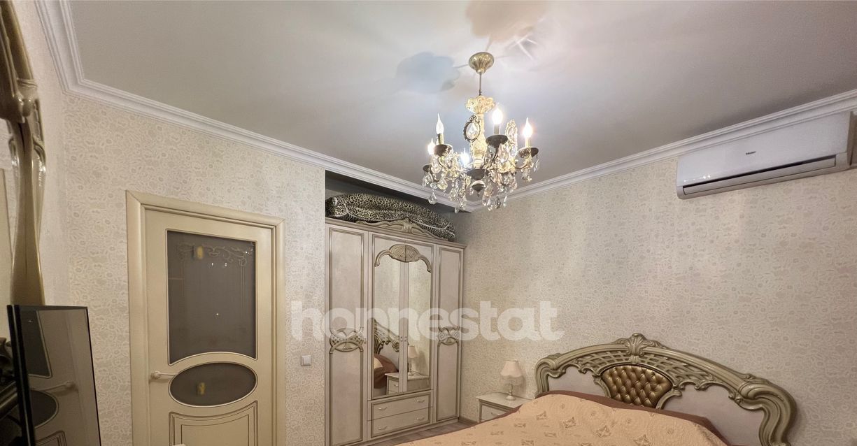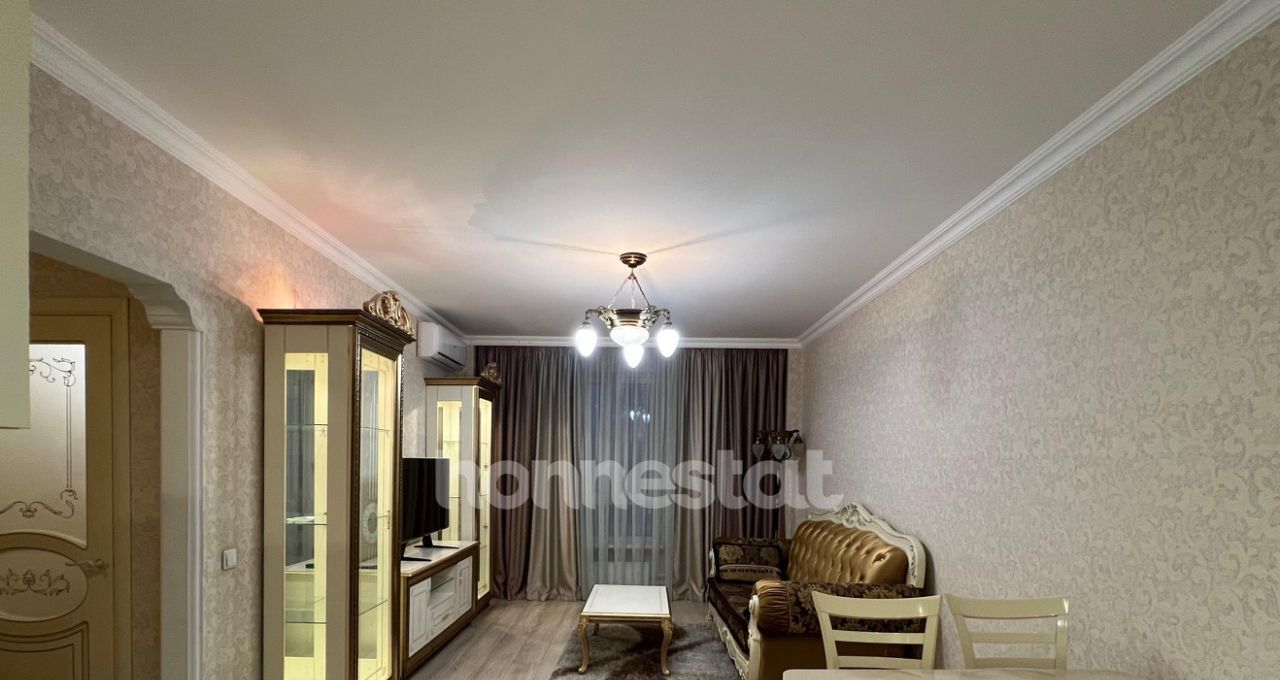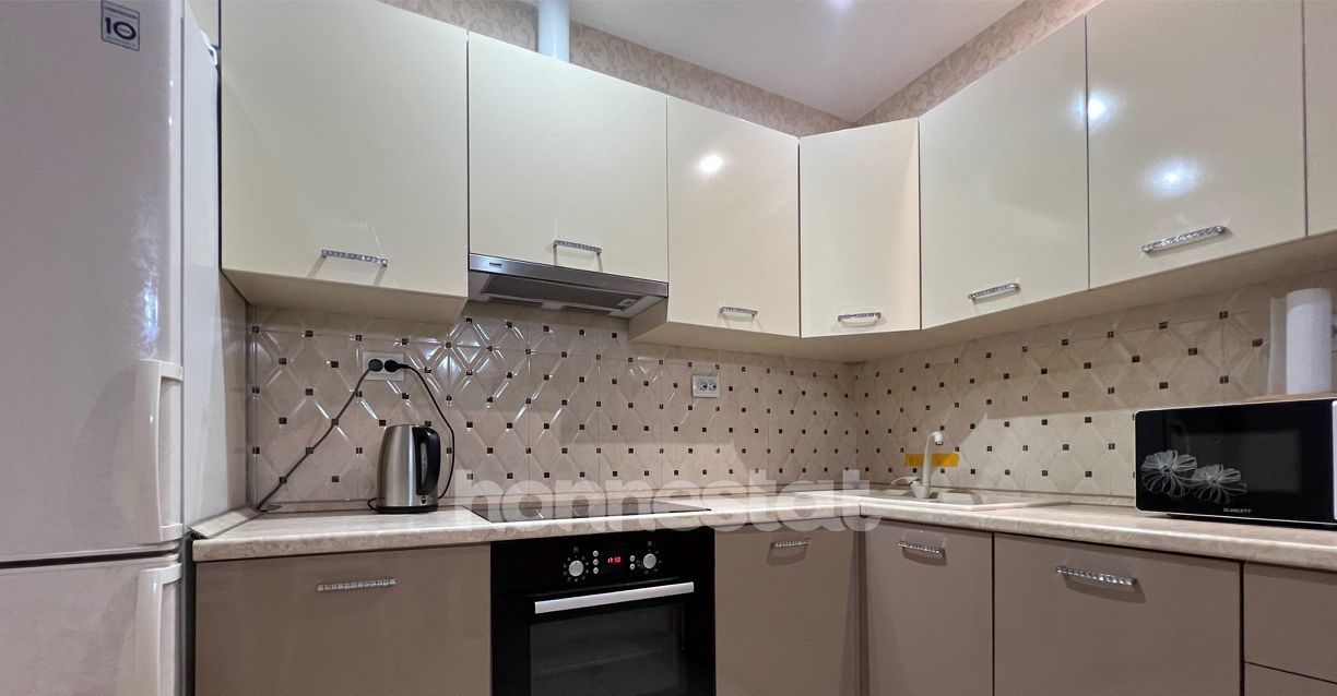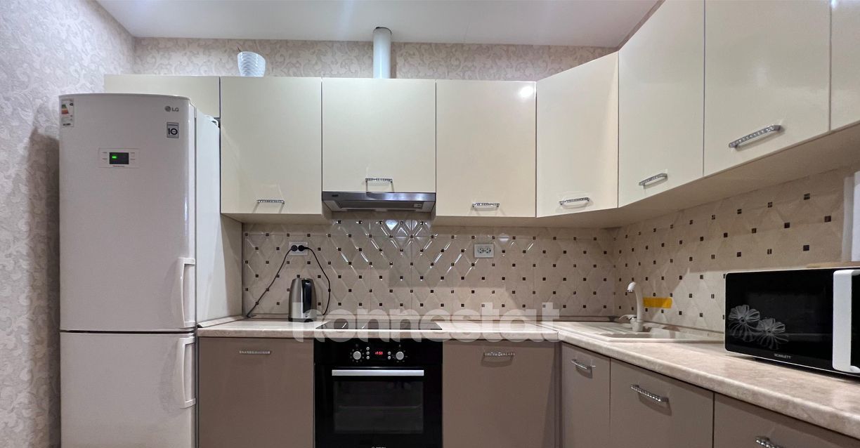 В квартире сделан качественный евроремонт. Здесь есть всё необходимое для комфортного проживания: кондиционер, холодильник, посудомоечная машина, телевизор и стиральная машина. Мебель на кухне и в комнате уже установлена, поэтому можно сразу заехать и наслаждаться уютом. Планировка включает две комнаты и совмещенный санузел с душевой кабиной. Окна выходят во двор, поэтому в квартире тихо и спокойно.