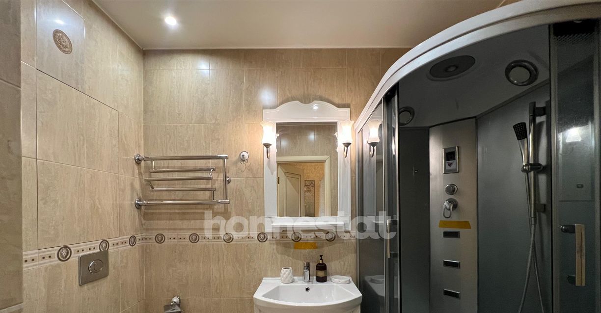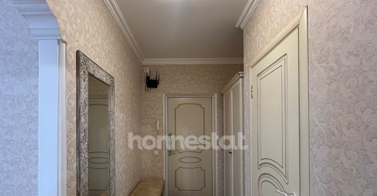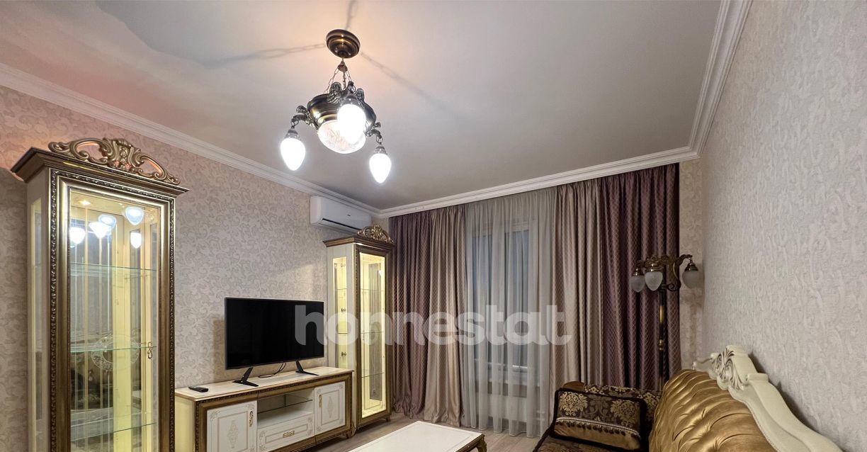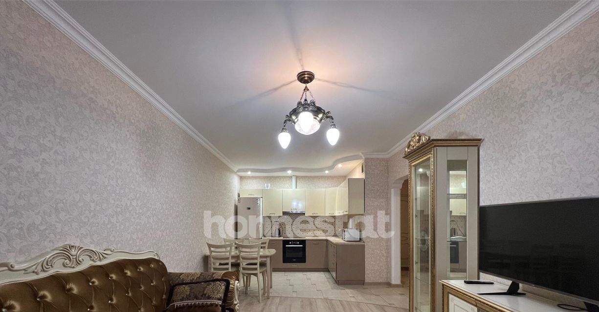 В квартире сделан качественный евроремонт. Здесь есть всё необходимое для комфортного проживания: кондиционер, холодильник, посудомоечная машина, телевизор и стиральная машина. Мебель на кухне и в комнате уже установлена, поэтому можно сразу заехать и наслаждаться уютом. Планировка включает две комнаты и совмещенный санузел с душевой кабиной. Окна выходят во двор, поэтому в квартире тихо и спокойно.