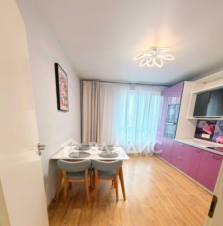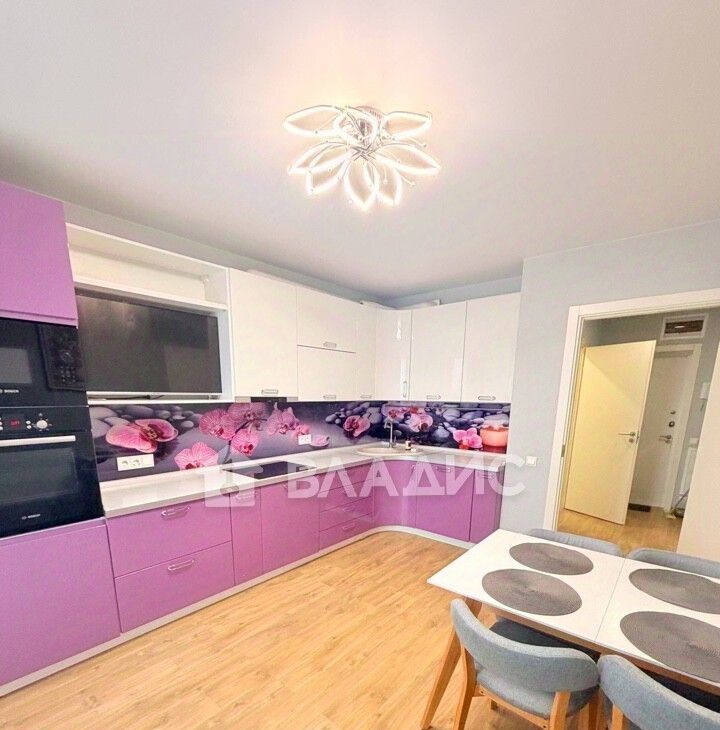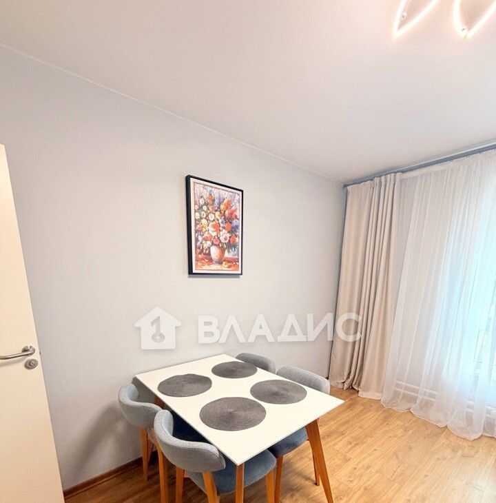 Квартира расположена на 20-м этаже 25-этажного монолитного дома, построенного в 2017 году. Общая площадь — 70 кв. м, из которых 33 кв. м — жилая площадь, 14 кв. м — кухня. Высота потолков — 2,7 м, что создаёт ощущение простора и свободы.