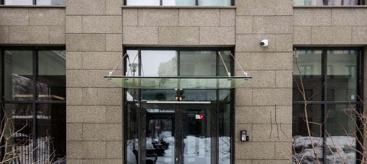 Окна выходят в тихий заснеженный двор комплекса.