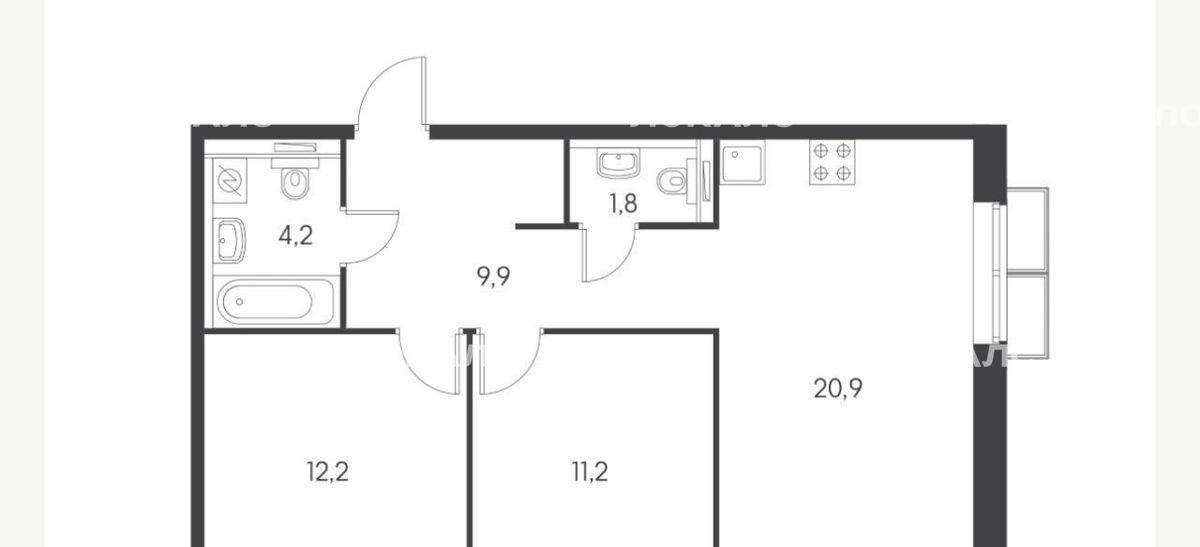 Встроенные элементы: кухня, тумба в спальне, шкаф в коридоре.