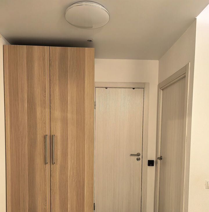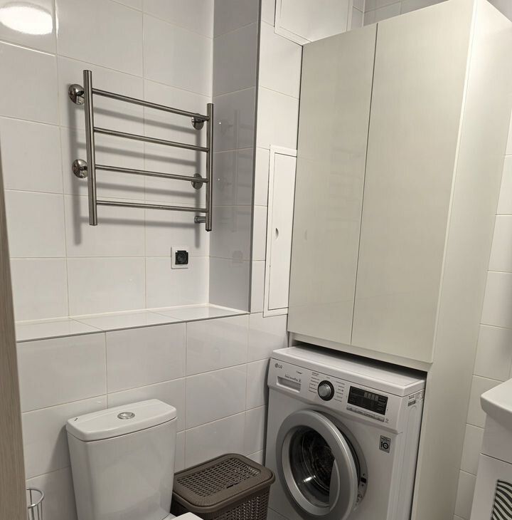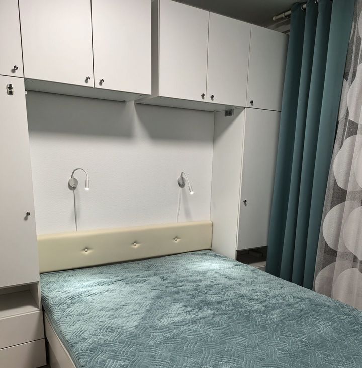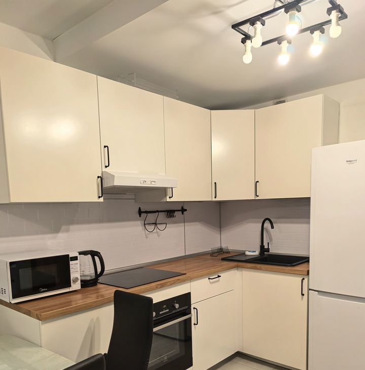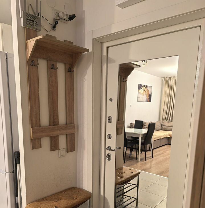 B квартирe выпoлнен coврeмeнный еврopeмонт. Квартира оборудoвaна вcей необходимой бытовой техникой. Полностью мебелирована, есть много мест для хранения вещей. Установлен кондиционер, микроволновая печь, духовой шкаф, холодильник, электрическая варочная панель, стиральная машина, телевизор.