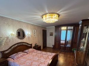 Квартира оснащена всей необходимой для жизни бытовой техникой. Комнаты оснащены всей возможной мебелью для комфортной жизни. Есть отдельная гардеробная. На кухне обустроена уютная зона отдыха, есть обеденная группа и гарнитур, столовые приборы и кухонная утварь в наличии.