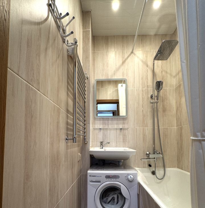 В маленькой комнате можно сделать кабинет или детскую. А так же вместительная гардеробная и раздельный санузел с ванной.