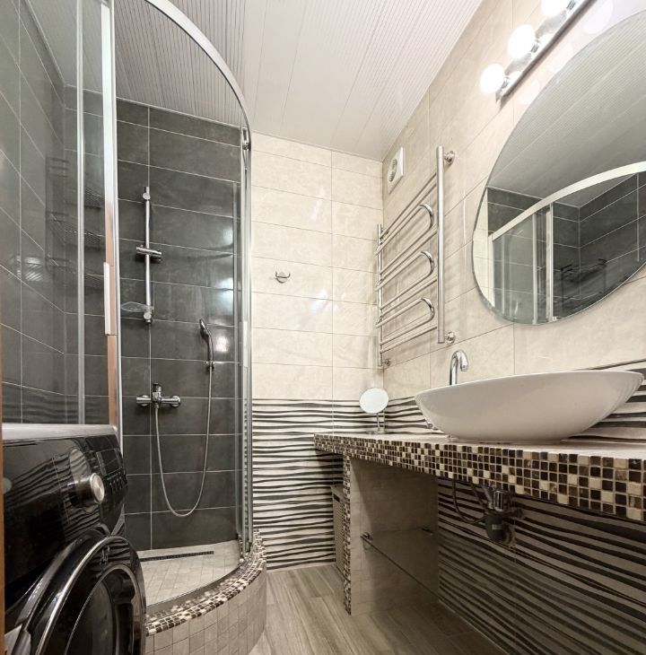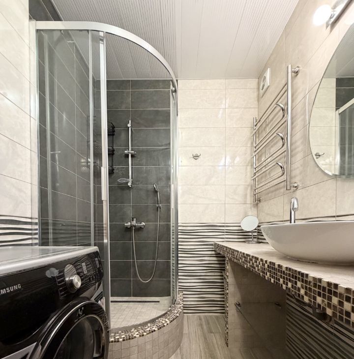 Ванная: душевая кабина, полотенцесушитель, стиральная машина Samsung. Раздельный санузел. Прихожая: 2 шкафа, тумбочка, обувница, вешалка, пылесос. Заст и утепл лоджия: встр шкаф. Интернет. Дмф. Метал. дверь. Закрытый тамбур на 2 квартиры. 2 пассаж лифта. Чистый подъезд, консьерж. Приличные соседи. Возможность парковки рядом с домом.