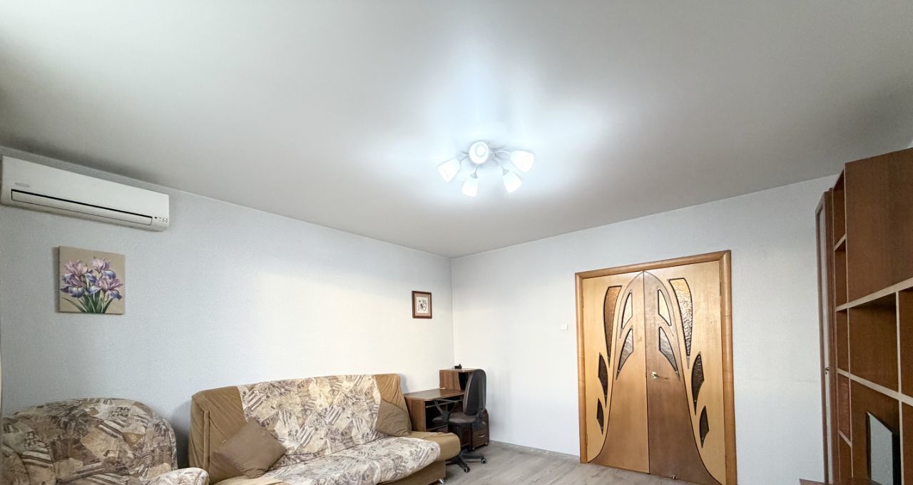 Большая комната 17 кв м: диван двуспальный раскладной, кресло, стенка, ТВ Thomson, стол обед, письм стол, тумба, компьютерное кресло, кондиционер General climat.