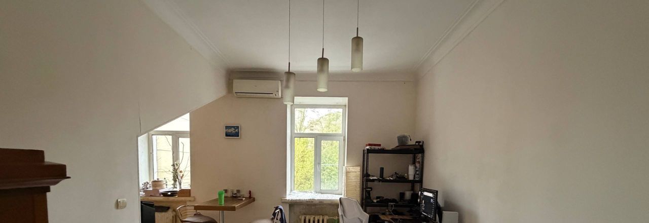 Квартира просторная и очень светлая, окна выходят на солнечную сторону и в небольшой тихий сквер, что создаёт ощущение уюта и уединения прямо в сердце города.