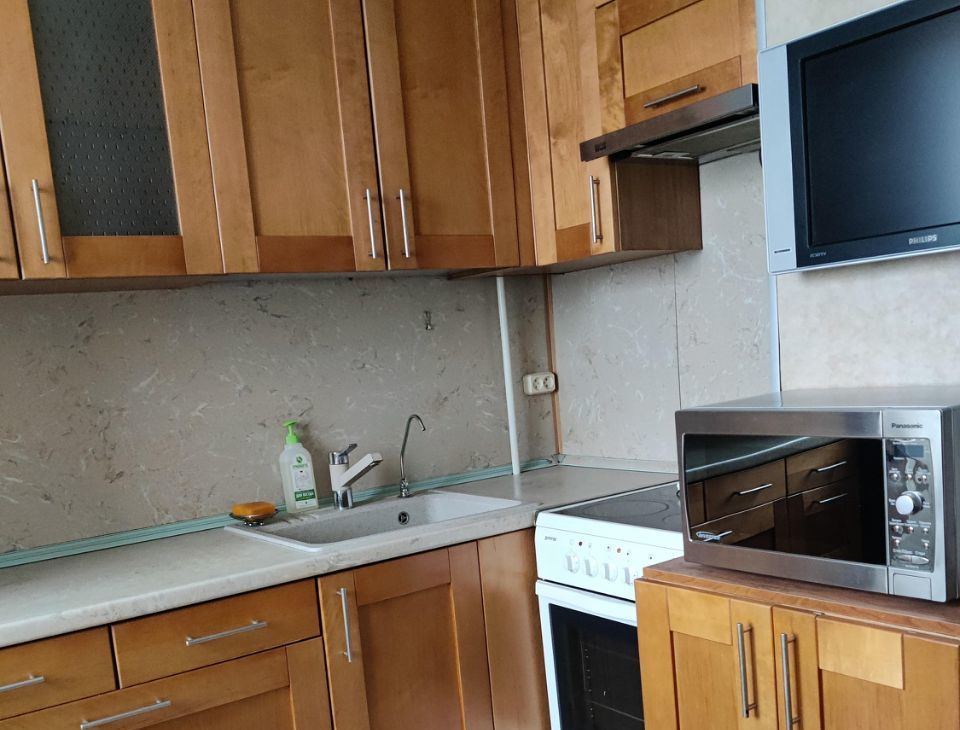 В квартире есть все необходимое для комфортного проживания. Просторная кухня оснащена мебелью и необходимой техникой, включая холодильник и телевизор. В комнатах также есть вся мебель, в ванной установлена ванна и стиральная машина. Имеется лоджия, где можно устроить зону отдыха.