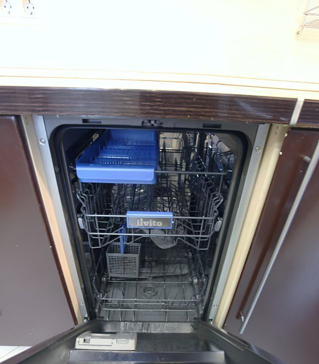 Вся мебель и бытовая техника - в наличии, включая посудомоечную машину. Много мест хранения. Все так, как на фото.