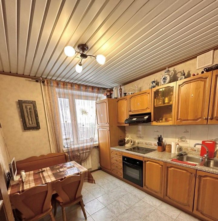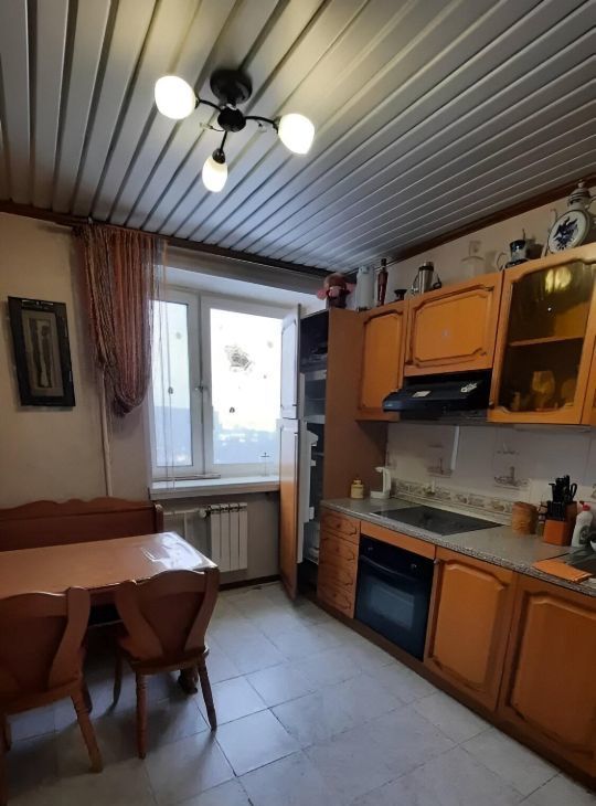 В просторной кухне 10 м, кухонный гарнитур , обеденная группа , холодильник.
