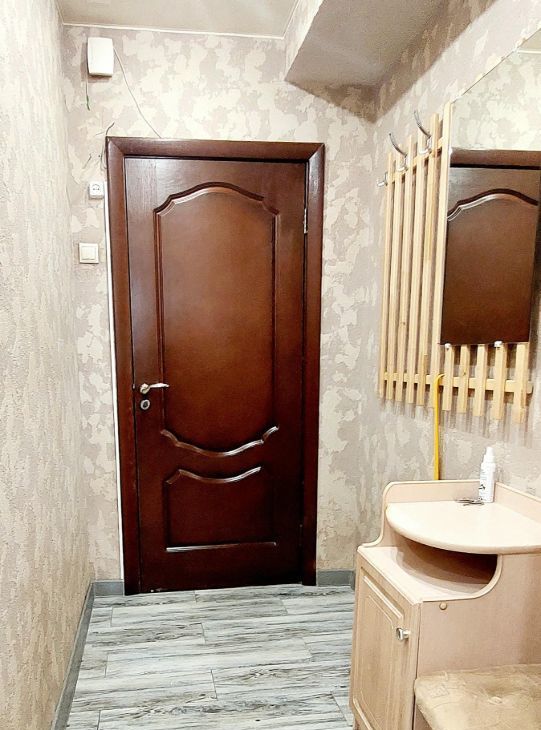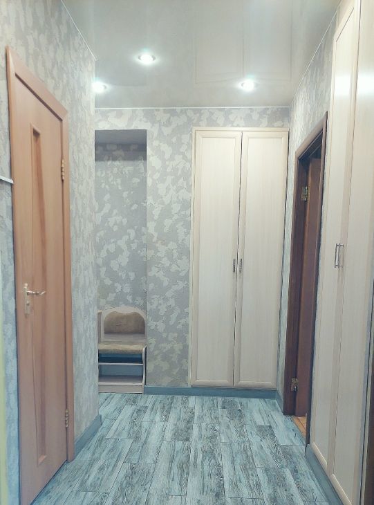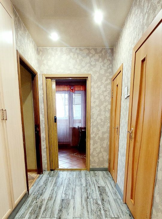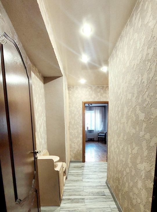 В коридоре встроенные шкафы, глубина 60 см., под потолок. Окна в квартире выходят во внутренний двор.