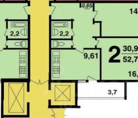 Общая площадь 53 кв.м. Высота потолков 2,7 м.