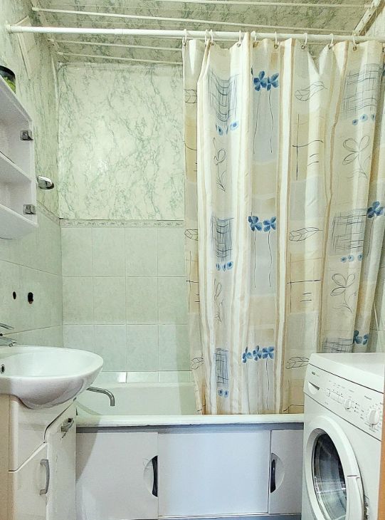 В квартире есть вся необходимая мебель и техника: телевизор, холодильник, чайник, микроволновка, посуда, стиральная машинка, пылесос, напольная сушилка, гладильная доска.