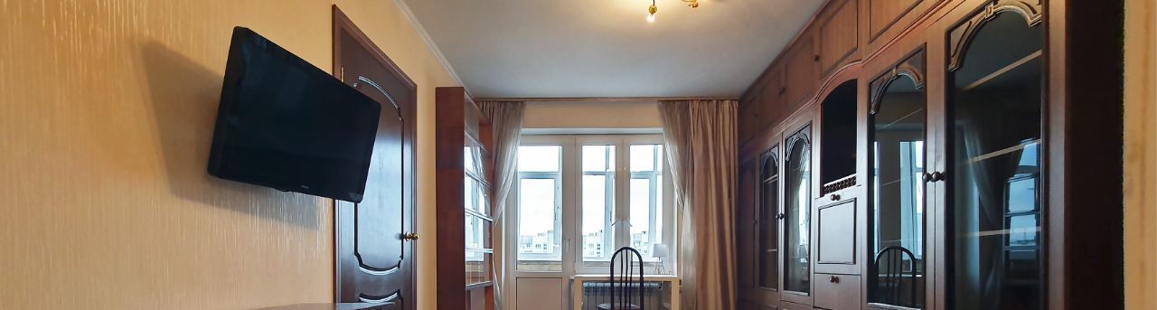 Мебель: вся необходимая — диван раскладной двуспальный, шкафы, кровать (односпальная), 2 рабочих стола, кухонный гарнитур.